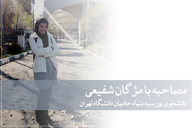 مزگان شفیعی، دانشجو افتخار‌آفرین یک‌دوره بورسیه بنیاد حامیان دانشگاه تهران است. او با استفاده از سهمیه استعداد‌ درخشان، توانست در مقطع کارشناسی ارشد دانشگاه تهران مشغول به تحصیل شود. شفیعی در گفتگو با خبرنگار بنیاد حامیان از پیشنهاد شغلی‌ در راستای کسب مهارت‌های کاری می‌گوید که مشروح آن را در ادامه می‌خوانید:
